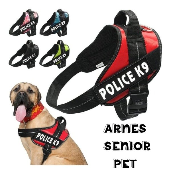 Arnes regulable, acolchonado recubierto de cordura, con manija en la espalda para control.